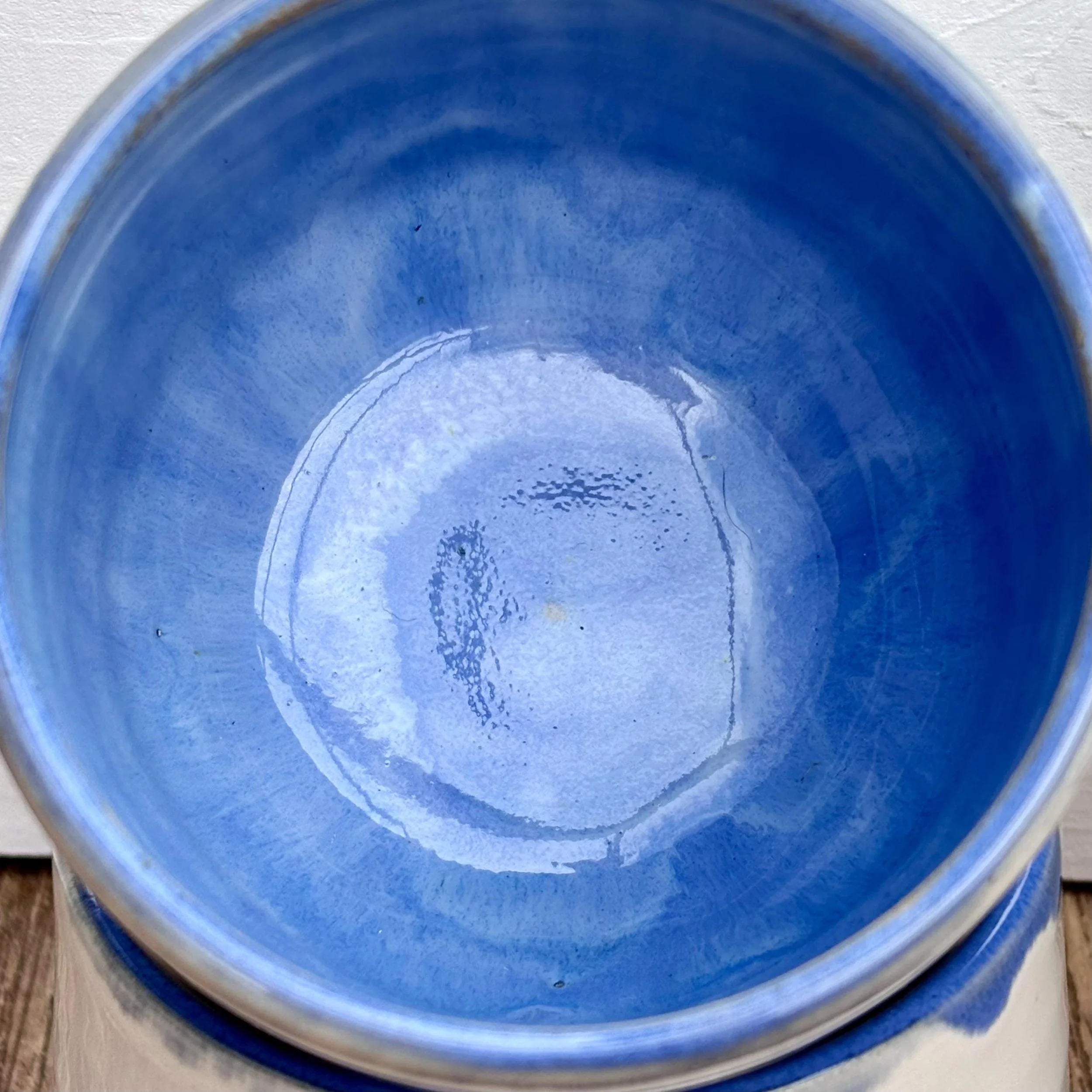 Bringe Stil und Handwerkskunst in deinen Alltag mit dieser handgemachten Keramiktasse von Weyhbrand! Jede Tasse wird liebevoll auf der Töpferscheibe gefertigt und ist ein echtes Unikat. Die minimalistische, bauchige Form liegt angenehm in der Hand und die sanfte, helle Glasur mit sichtbaren Drehrillen macht jede Tasse zu etwas ganz Besonderem. Ob für Kaffee, Tee oder heiße Schokolade – diese Tasse ist dein perfekter Begleiter für gemütliche Genussmomente. Die hochwertige Steinzeugkeramik ist spülmaschinenfest und robust, sodass du lange Freude daran hast. Details: • Handgetöpfert in Deutschland • Material: Steinzeug, lebensmittelecht glasiert • Fassungsvermögen: ca. 250 ml • Farbe: Weiß /Blau, leicht transparent • Pflegeleicht & spülmaschinengeeignet • Jedes Stück ein Unikat Schenke dir selbst oder deinen Liebsten ein Stück echte Handwerkskunst – von Herzen gemacht bei Weyhbrand!